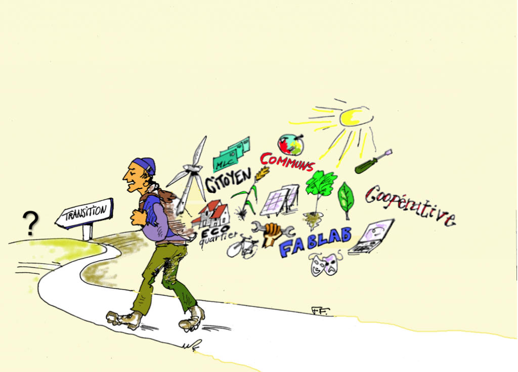 » 3600 km à pieds, après mes 70 ans, en France à la rencontre d’alternatives dans tous les domaines : depuis le paysan boulanger et la ferme de permaculture, jusqu’aux fabs labs et à un lycée public innovant en passant par les monnaies locales complémentaires, la production d’énergie citoyenne, les espaces de co-travail, un logiciel de dialogue pour tous les acteurs de la vie locale, les éco quartiers avec habitat participatif, les associations ville en transition et une EPHAD éco responsable…